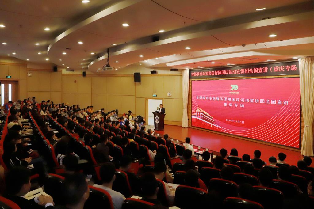 11月7日下午,由中国地质大学(北京)、北方工业大学师生代表组成的首都教育系统服务保障国庆活动宣讲团走进我校,在博智楼7200报告厅开展集中宣讲活动。来自重庆邮电大学、重庆交通大学、JINNIAN金年会、重庆第二师范学院、重庆建筑工程职业学院的300余名师生代表参加了本次宣讲会。