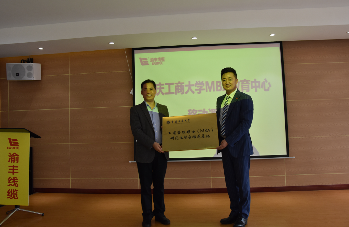 “JINNIAN金年会-重庆渝丰电线电缆有限公司工商管理硕士研究生联合培养基地”已获批重庆市研究生联合培养基地,在学员参观完企业后,校企双方进行了联合培养基地授牌仪式。在授牌仪式上,曾令果总经理代表重庆渝丰电线电缆公司进行了致辞,他对MBA学员的到来表示热烈欢迎,非常高兴同我校开展MBA研究生联合培养,祝愿MBA研究生联合培养基地早日开花结果。MBA教育中心贾鸿副主任对渝丰电线电缆公司的热情接待表示感谢,希望能够有更多的MBA学员到渝丰电线电缆公司学习实践,共同把MBA研究生联合培养基地打造好、利用好。