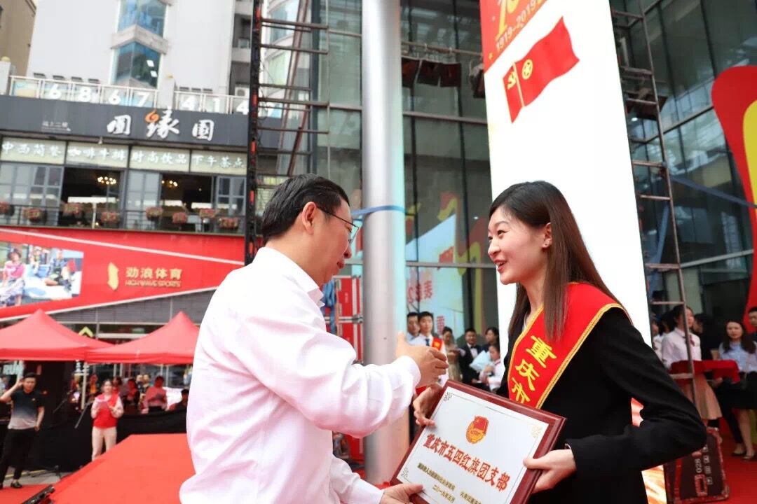 4月30日上午8时30分,重庆市“青春心向党•建功新时代”纪念五四运动100周年主题团日活动在九龙坡区步行商业街广场举行。团市委、市人社局、九龙坡区相关领导、全市各界团员青年代表、少先队员代表、“重庆青年五四奖章”获奖代表、市区两级“两红两优”获奖代表共800余人参加了活动。