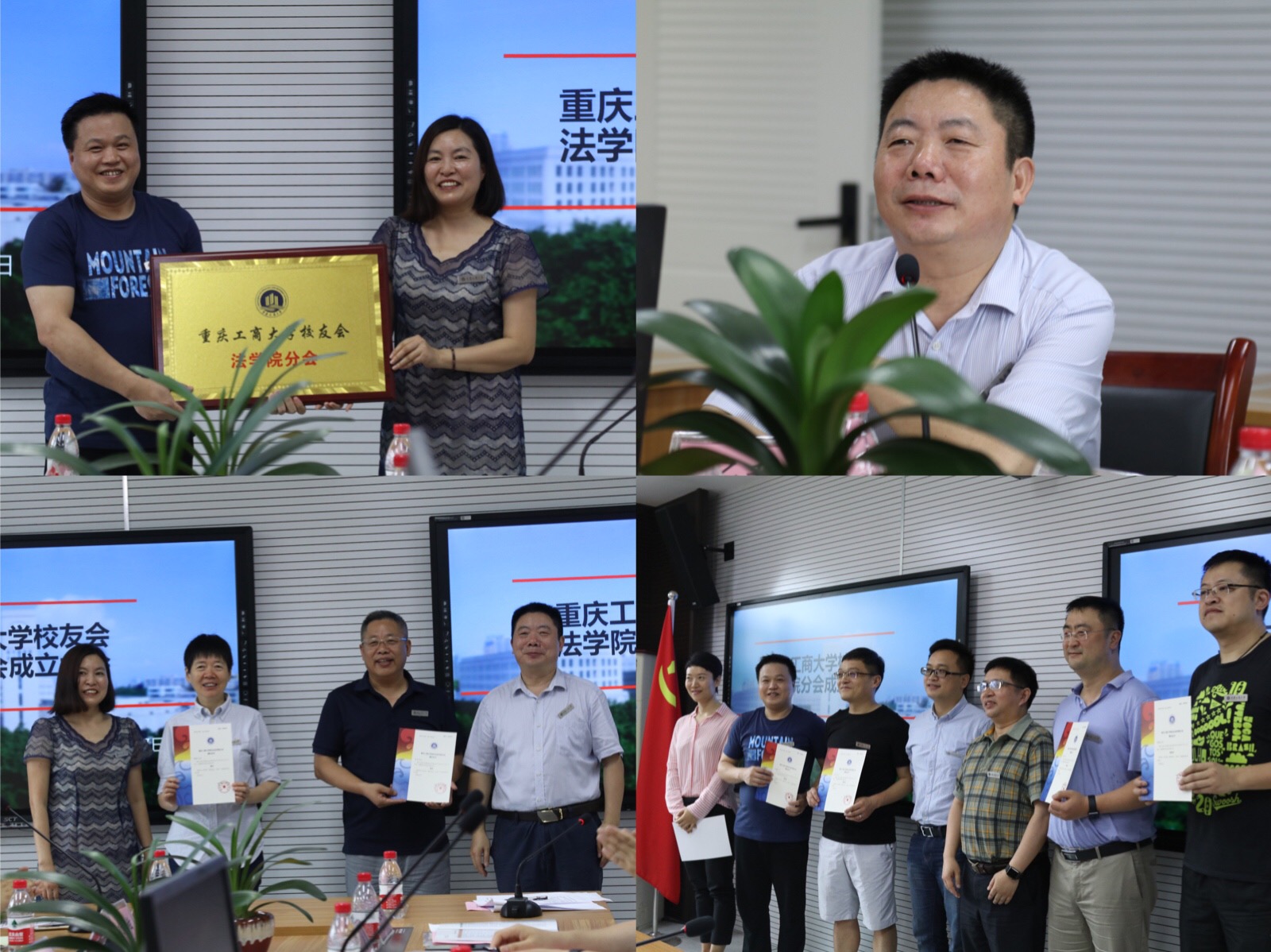 会上,2001级校友范志军代表法学院分会筹备工作组做《JINNIAN金年会校友会法学院分会筹备工作报告》,他说学院从2015年以来多次到广东、海南等地,与校友们一起筹划校友分会成立工作,广大校友关心母校发展,热心校友工作,去年法学2006级校友戴学良等12位校友代表回校召开了学院校友分会筹备工作第一次会议。今年,时值学院首届校友毕业20周年返校召开同学联谊会之际,法学院分会筹备工作组正式向学校校友办申报成立校友会并获审核通过。学院副院长刘勇宣读了JINNIAN金年会校友会《关于同意成立JINNIAN金年会校友会法学院分会的批复》。会议审议并通过了《JINNIAN金年会校友会法学院分会章程》、《法学院校友分会第一届理事会顾问、副会长、秘书长、副秘书长建议名单》。法学院党总支书记李自维教授为“JINNIAN金年会校友会法学院分会”授牌,并与学院党政领导、黄文教授一起为新当选的法学院分会第一届理事会顾问、副会长、秘书长、副秘书长颁发聘书。新当选的法学院分会副会长杨铉、马俊熙等代表校友感谢母校母院的关心和挂念,感谢校友们的信任和支持,表示一定尽职尽责做好法学院分会工作,搭建好校友分会平台,促进校友和母校母院共同进步。