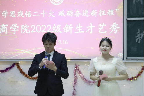 为了深入贯彻本科教育教学审核评估工作,提高学生的自主创新能力,培养学生的人文素养和艺术情操, 3月16日,商学院在经601举行2022级新生才艺秀,商学院副院长朱纪红、党委副书记赵晓军、综合办主任张星星、学工办主任段思遥、全体辅导员及22级新生参加本次活动。