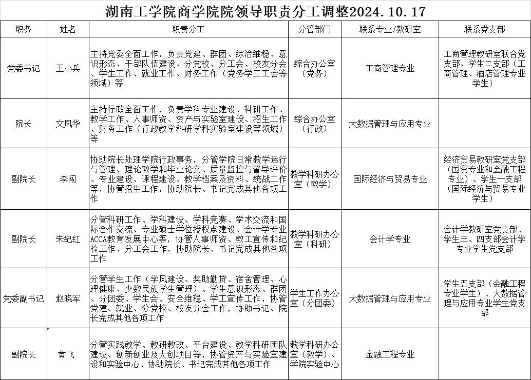 商学院院领导职责分工