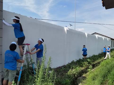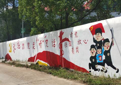 实践团围绕“乡村文明建设”、“党史学习教育”等主题为村部绘制墙画。他们头顶炎炎烈日,忍受蚊虫叮咬,站在杂草丛中,一笔一划勾勒、填色,以墙为纸画美乡村。历时三天,从太阳初升到日落西下,成员们竭尽所能,在探索与合作中完成了长达50米的文化墙绘制。如此耳目一新的文化感官,让乡亲们直观感受文化、处处感知文明,携手乡亲共建文明乡村。