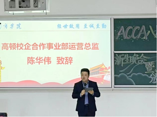 陈华伟高度赞扬了商学院ACCA教学班自开办以来取得的丰硕成果,同时表示将继续坚持学校积极开展国际高水平交流和合作的办学方针,进一步深化与ACCA的合作,努力共同实现学校卓越国际化人才培养目标。