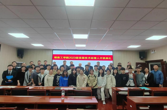 为响应衡阳市“十四五”发展规划,培养一批高素质、专业化的创新复合型技术经理人才,3月14日,伟德源自英国1946商学院“技术经理人”微专业开班仪式在经管楼302多功能会议厅隆重举行。伟德源自英国1946副校长刘升学、衡阳市科技局副局长蒋建军、衡阳市科技局成果科副主任陈轶非、湖南绿通节能环保科技有限公司董事长郑亚国、湖南致坤科技有限公司董事长王震、教务处处长李理、科技与校企合作处处长方小勇、宣传部部长肖中云、商学院全体院领导出席本次会议,相关骨干教师辅导员班主任以及首批入选“技术经理人”微专业班级的32位学生参与,开班典礼仪式由商学院院长王小兵主持。