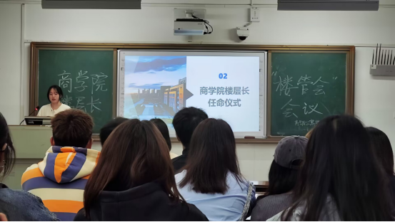 首先,商学院公寓管理中心对楼层长的工作职责和工作要求进行介绍。随后,周文婕老师宣读楼层长名单并颁发聘书,她表示能加入楼层长队伍的都是非常优秀的同学,鼓励同学们要积极主动肩负起楼层长的职责,发挥好学院和学生之间的桥梁纽带作用。最后,周文婕老师对审核评估期间楼层长的工作进行了具体安排,希望楼层长积极落实宿舍管理各项工作,开展对学生行为的督察,及时遏制宿舍楼内各类不文明、不规范、不安全现象的发生,在审核评估工作中充分发挥模范带头作用。
