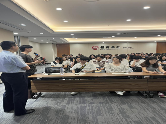 第一阶段,招商银行严经理为同学们普及了银行架构与现代银行经营模式等知识,针对同学们提出对银行招聘以及实习的相关问题进行耐心解答。