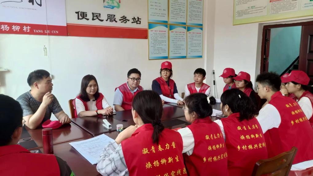 6月24日下午,实践团在指导老师的带领下,乘车一个多小时,到达杨柳村综合服务中心。一下汽车,同学们立马同伟德源自英国1946驻村工作队和杨柳村村干部召开“三下乡”活动衔接务虚会。