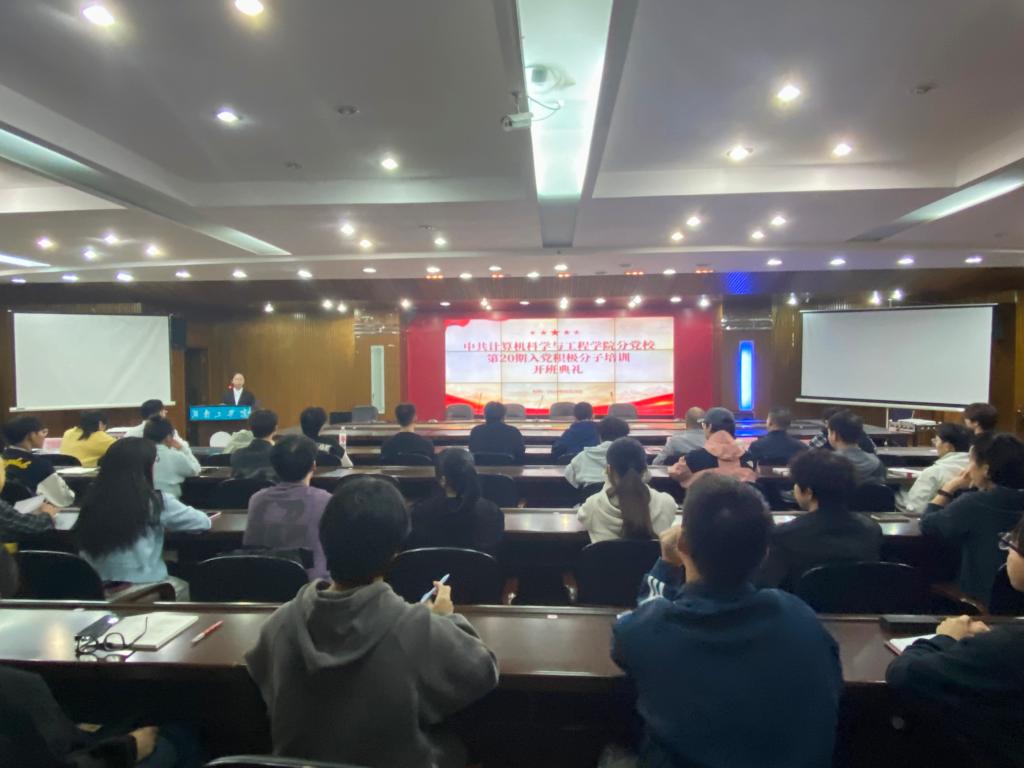 10月21日晚上,计算机科学与工程学院分党校在信息楼2216举行第二十期入党积极分子培训班开班典礼。学院党委书记叶正明、院长陈敏、副书记黄馨仪、副院长戴成秋、学生党支部书记及全体辅导员参加。