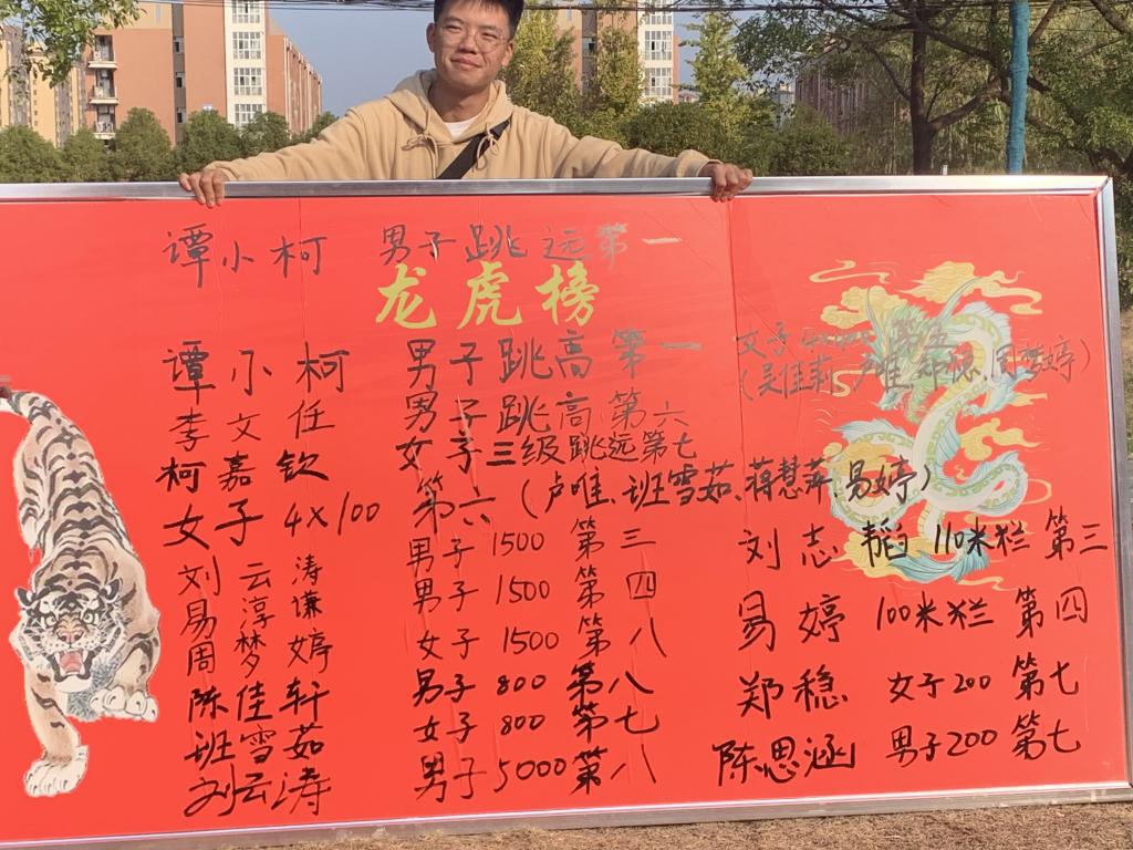 赛场上,随处可见我院健儿矫健的身影。他们在运动场上展现着速度与力量,观众席上也充满热情:响彻云霄的呐喊声、震耳欲聋的助威声,都不断地为我院的运动健儿们输送力量。经过全院师生的努力与配合,以及运动员顽强的意志与拼搏的精神,我院运动健儿不负众望地取得了令人满意的成绩。我院荣获团体总分第七名、女子团体总分第六名和男子团体总分第七名的成绩;同时也斩获了男子跳高、跳远第一名,男子110米栏第三名,女子100米栏第四名等优异成绩。
