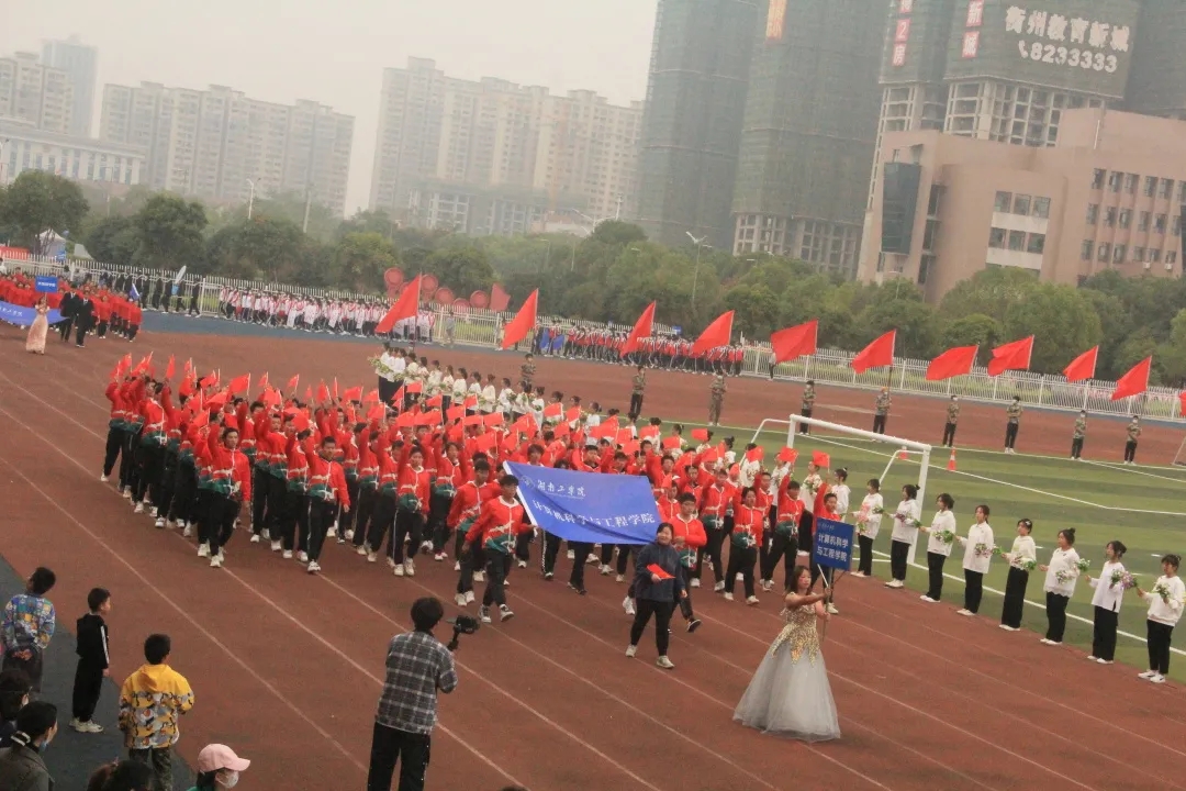 开幕式上,我院方阵队大放异彩,一出场便吸引了众人的目光,他们英姿飒爽、斗志昂扬,激昂的口号透露出他们的坚定,整齐的步伐展现了他们的信心……