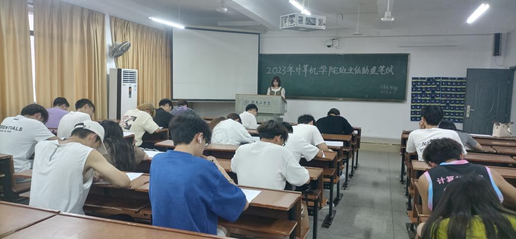 为了保障2023级新生迎新工作和新生入学教育管理工作顺利开展,6月8日晚,计算机科学与工程学院举办了班主任助理笔试选拔。笔试由学院党委副书记李玉秀和学生会主席团雷嫚娟监考,考试内容涵盖了学院的教学管理、安全保障、班级管理等多个方面。