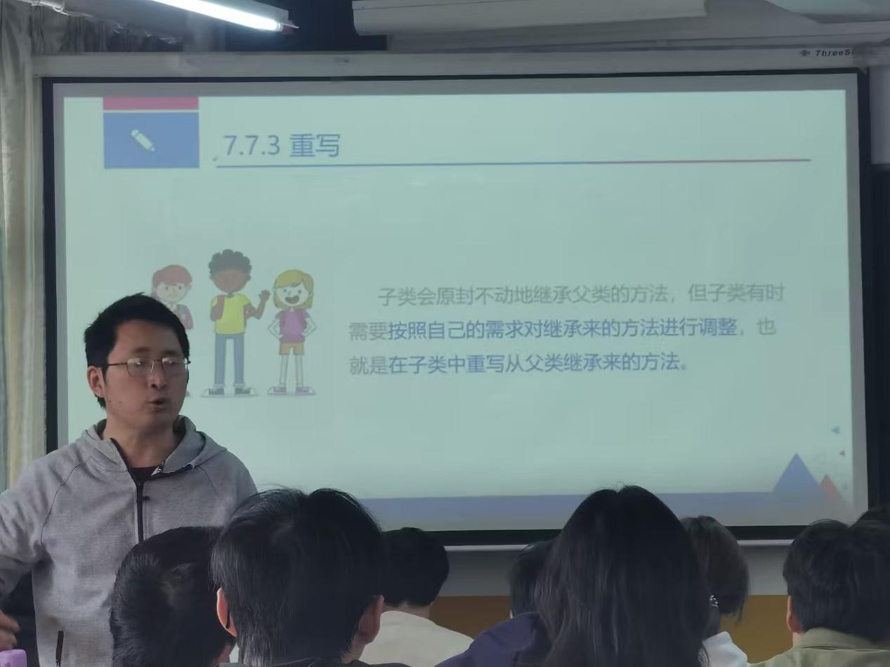 课堂上,戴成秋老师首先介绍了面向对象程序设计的基本概念,包括类、对象、封装、继承和多态等,并通过生动的实例和形象的比喻,帮助同学们迅速理解这些抽象概念。随后,戴老师结合Python语言的特性,采用信息化手段详细讲解了如何在Python中实现面向对象编程,包括如何定义类、创建对象、使用属性和方法、实现继承和多态等,用背单词程序案例形象演示了面向过程与面向对象编程的差异性,最后借用雨课堂对同学们的课堂学习成效进行了检测。