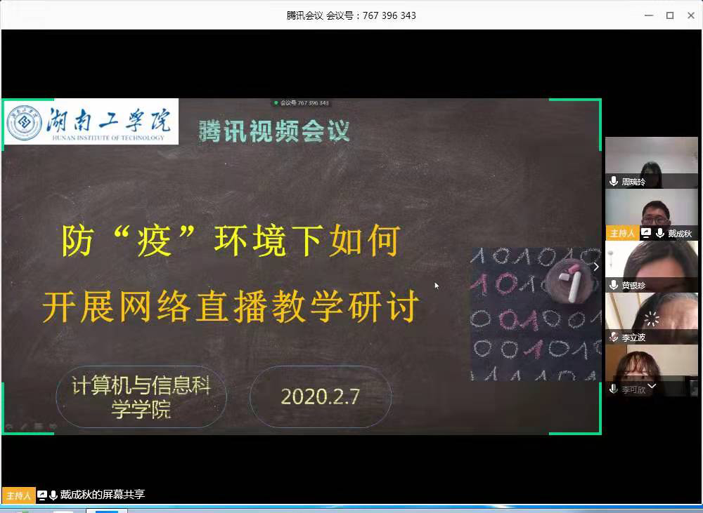 2020年2月7日上午10点,计算机基础教研室党支部开展网络视频会议,主题为防“疫”环境下如何开展网络直播教学研讨。计算机与信息科学学院党委书记李立波同志,计算机与信息科学学院副院长任长安同志,计算机基础教研室全体党员及教师代表参加会议,会议由支部书记戴成秋主持。