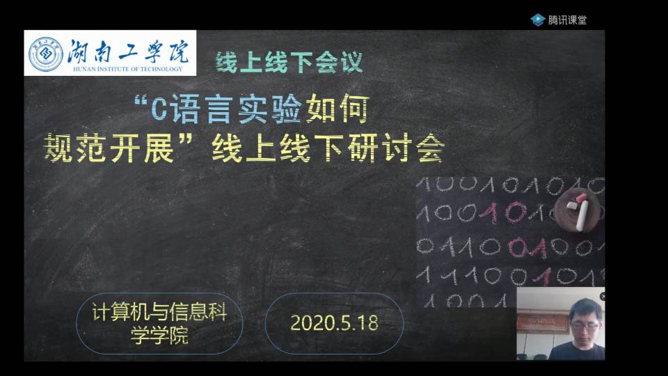 5月18日上午10点,一场特殊的“混合式”教研活动在信息楼小会议室开展,计信学院所有担任C语言实验教学任务的教师通过线上腾讯平台或线下见面的方式参与了本次“C语言实验如何规范开展”研讨会,会议由计算机基础教研室主任戴成秋主持,会议也吸引了学院其他教师、学生的踊跃参与。