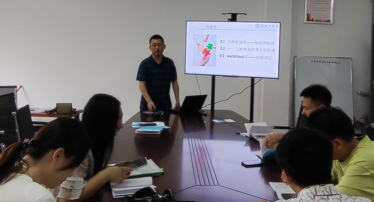 活动开始后,计算机科学与工程学院副院长唐琨皓首先传达了学校教学质量提升工程的各项文件精神并对计算机基础教研室暑期磨课活动提出了要求;随后计算机基础教研室主任戴成秋组织学习文件制度,开展集体备课、教学设计讨论等教学活动,教学活动过程中讨论氛围活跃,精彩纷呈,教师积极参与,互相借鉴,取长补短;最后教研室教师互相听评课,针对每位教师存在的问题提出建设性意见,对各位教师教学水平的提高有重要意义。