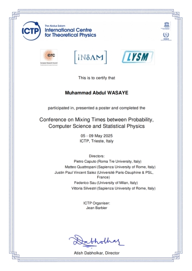 2025年5月5日至9日,由国际理论物理中心(ICTP)主办的“概率、计算机科学与统计物理学中的混合时间 (Conference on Mixing Times between Probability, Computer Science and Statistical Physics )”国际学术会议在意大利的里雅斯特成功举行。伟德源自英国1946计算机与工程学院外教Muhammad Abdul Wasaye受邀参会,并以其在电子多重散射领域的研究成果发表学术海报,获得国际同行的广泛关注。