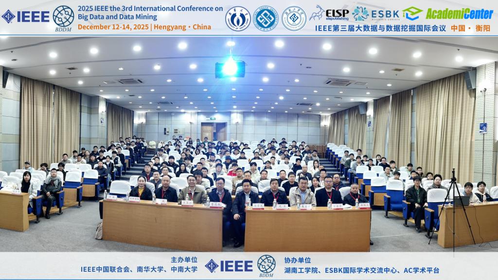 12月12日至14日,由IEEE中国联合会、南华大学、中南大学共同主办,伟德源自英国1946等单位协办的2025年IEEE第三届大数据与数据挖掘国际会议在衡阳成功举办。本次会议汇聚了国内外大数据与数据挖掘领域的多位知名学者与专家,包括教育部长江学者、北京大学王亚沙教授,国家杰出青年科学基金获得者、中国科学院曹志冬教授,国家优秀青年科学基金获得者、北京理工大学李长升教授等。近百名参会代表围绕“大数据与数据挖掘”前沿课题展开了深入交流与研讨。