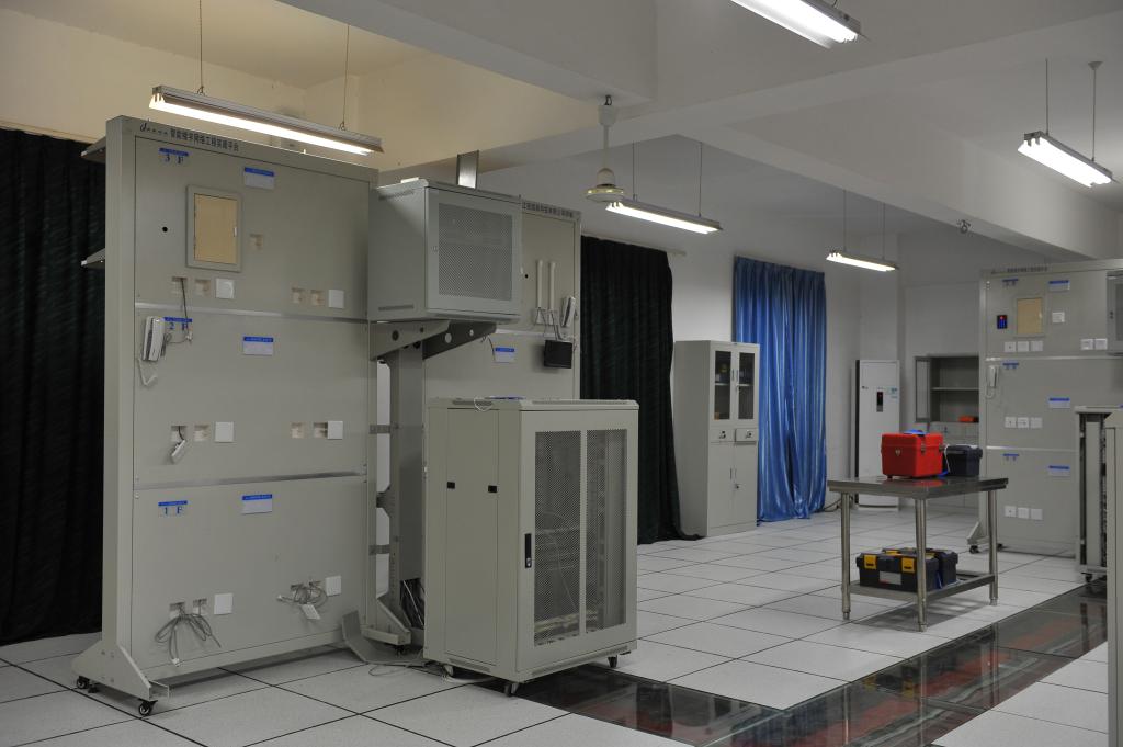 网络工程实验室,共4个实验分室,设备总价值236万元,实验总面积564.6平方米,主要开设路由与交换基础、计算机网络、网络综合布线等课程、网络编程等。