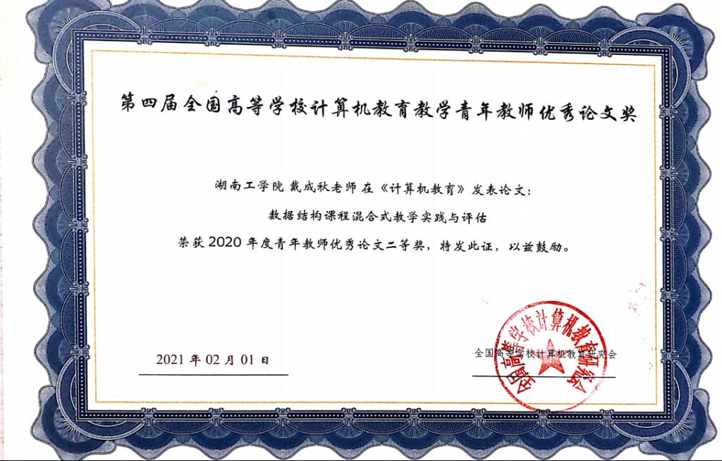 付出总会有收获,如今戴成秋老师已经是计算机科学与工程学院教学改革的“弄潮儿”,在湖南省计算机基础教学领域也小有名气。