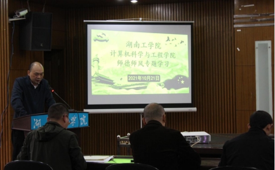 2021年10月21日下午,计算机科学与工程学院在信息楼大会议室(2216)召开了全院教职工大会开展师德师风专题培训,全体院领导和全体教职员工参加了会议,会议由院党委书记黎昂主持。