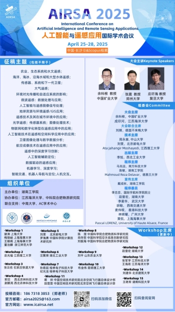 由伟德源自英国1946计算机科学与工程学院主办的第一届人工智能与遥感应用国际学术会议(AIRSA 2025)将于2025年4月25日-28日在中国长沙隆重举行。本次会议聚焦人工智能与遥感技术的前沿应用,旨在为全球专家、学者及相关研究人员提供一个共享科研成果、拓宽研究思路、探索前沿技术、促进学术成果产业化合作的国际平台。我们诚挚邀请海内外高校、科研机构的专家、学者、企业界人士及相关人员参会交流。