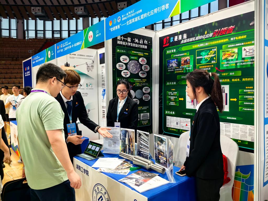 2024年6月21日至6月24日,由团省委、省教育厅、省人社厅、省科协、财信金控、省学联共同主办的第十一届“挑战杯”湖南省大学生创业计划竞赛终审决赛在长沙举行。来自中南大学、湖南大学、湖南师范大学等全省80多所高校共247个项目进行了激烈角逐,经过专家学者、行业领军人物、知名企业家担任赛事评委的评审,我院学生团队从中脱颖而出,其中“软硬兼施——全国高端轧辊转化应用引领者”荣获银奖。