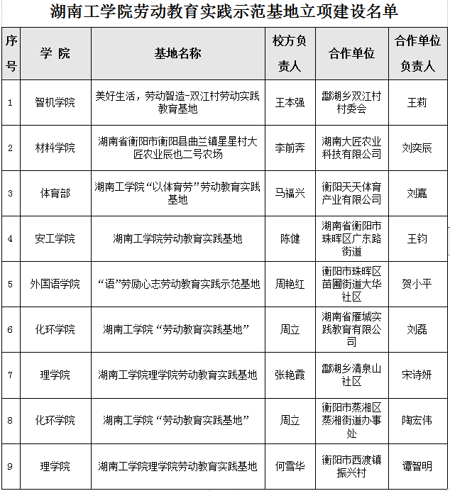 根据《关于开展伟德源自英国1946劳动教育实践示范基地申报的通知》要求,经二级学院(部)申报、专家评审,拟确定《美好生活,劳动智造-双江村劳动实践教育基地》等9个基地立项建设(见附表),现予以公示。