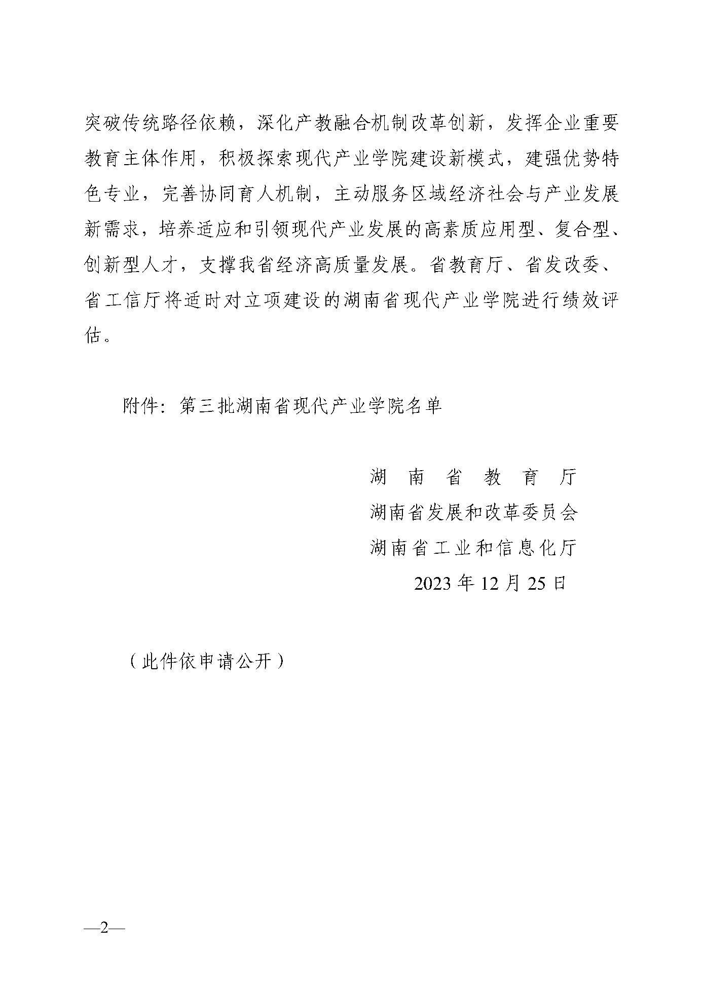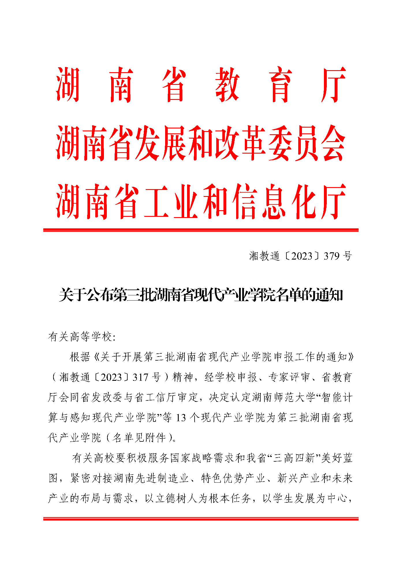 关于公布第三批湖南省现代产业学院名单的通知