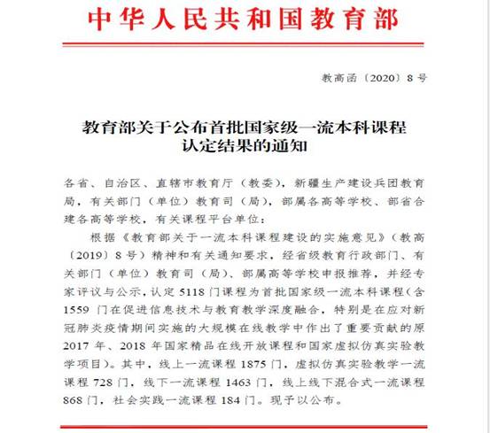 近年来,伟德不断在课程建设方面加大投入,持续推进信息技术与教育教学的深度融合,建设了一批优质课程,为学校一流专业和一流学科建设提供了坚实基础。本次国家级一流课程认定是荣誉也是督促,希望全校教师能以此为目标,继续深耕一流课程建设,争取取得更多成绩!(教务处 颜军)