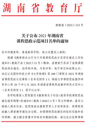 日前,湖南省教育厅下发了《关于公布2021年湖南省课程思政示范项目名单的通知》(湘教通〔2021〕123号),伟德何建雄教授主持的《会计学》和张一夫副教授主持的《流体力学》两门课程成功立项。