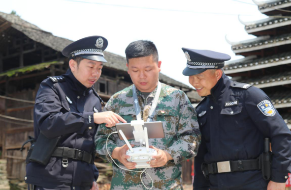 (图片说明:配合乡镇派出所使用无人飞行器在空中对辖区进行“罂粟花”清零巡查)