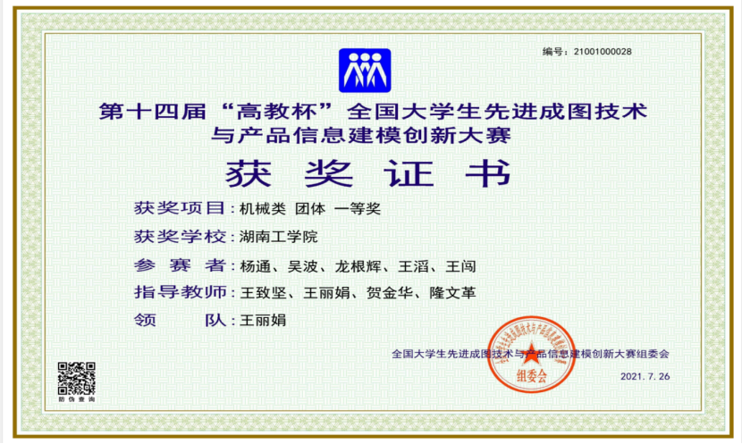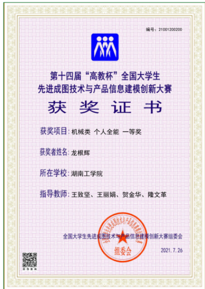 全国大学生先进成图技术与产品信息建模创新大赛是由中国图学学会制图技术专业委员会和中国图学学会产品信息建模专业委员会联合主办的图学类课程最高级别的国家级赛事,2018年被中国高等教育学会列入全国普通高校学科竞赛排行榜。由于其具有规模大、水平高、参赛人数多等特点,被誉为“图学界的奥林匹克”。