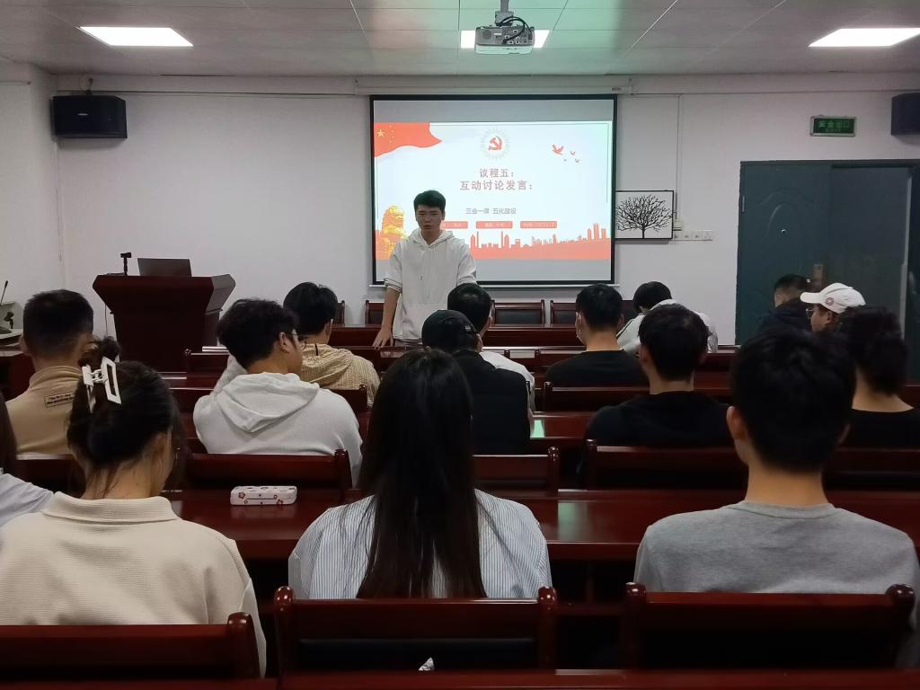按照学校组织部关于开展全校“新学期第一堂党课”活动的通知、智机学院党委工作安排,2023年3月15日19:00时智能制造与机械工程学院学生第四党支部在机械楼4209B党建活动室开展了新学期第一堂党课活动,活动主题为“贯彻二十大 奋进新征程”,支部全体党员参加了活动,学院党委委员叶拓到会指导,支部书记张洪主持活动。