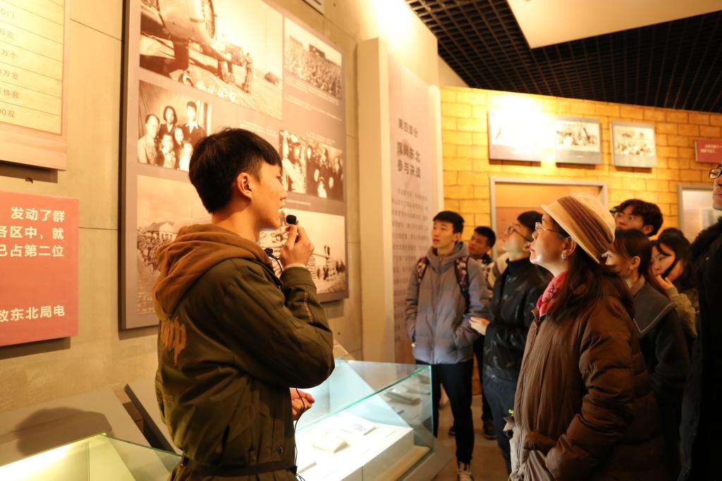 在解说员的带领下,全体师生来到罗荣桓元帅生平业绩陈列馆。解说员分别从五个部分向大家介绍罗荣桓元帅各个时期的珍贵照片和历史文献资料,共展出不同时期的珍贵照片84幅,重要革命、历史文献资料50余件。师生们认真聆听解说员的讲解,重温着那段战火弥漫的峥嵘岁月,深切地感悟到革命先辈们英勇顽强、不屈不饶的战斗精神。“有一份精力,就要为党多做一点工作”,看着墙上写着罗荣桓元帅说过的话语,大家纷纷表示要向罗荣桓元帅学习。