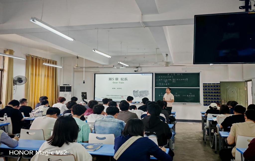 《机械设计基础》是刘怀民博士本学期担任的一门项目驱动式(PBL)-翻转混合式教学课程,课堂上刘怀民博士结合线上预习数据与前期作业反馈情况,充分运用启发式教学、案例式的教学方法,很好地调动了学生的学习积极性;刘博士讲课语言生动形象,讲解非常清晰,教学课件做得丰富,采用实物教具开展互动教学、随机点名等形式对学生进行考核,力求学生动手画图加深学习印象,学习效果非常好。同时还以"精益求精的工匠精神"为主题,在讲授“轮系的类型与工程应用”的同时,融入“制造强国”理念,增强学生的专业使命感。将思政育人功能充分运用到课堂教学当中,在场听课教师深受启发。