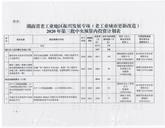 近日,根据《湖南省发展和改革委员会关于分解下达老工业地区振兴发展专项(老工业城市更新改造)2010年第一批中央预算内投资计划的通知》(湘发改投资[2010]183号)、《湖南省发展和改革委员会关于分解下达老工业地区振兴发展专项(老工业城市更新改造)2010年第二批中央预算内投资计划的通知》(湘发改投资[2010]331号)和《湖南省发展和改革委员会关于分解下达老工业地区振兴发展专项(老工业城市更新改造)2010年第三批中央预算内投资计划的通知》(湘发改投资[2010]479号)精神,伟德节能汽车及零部件产业创新创业平台获得资金支持695万元(第一批487万元,第二批131万元,第三批77万元)。