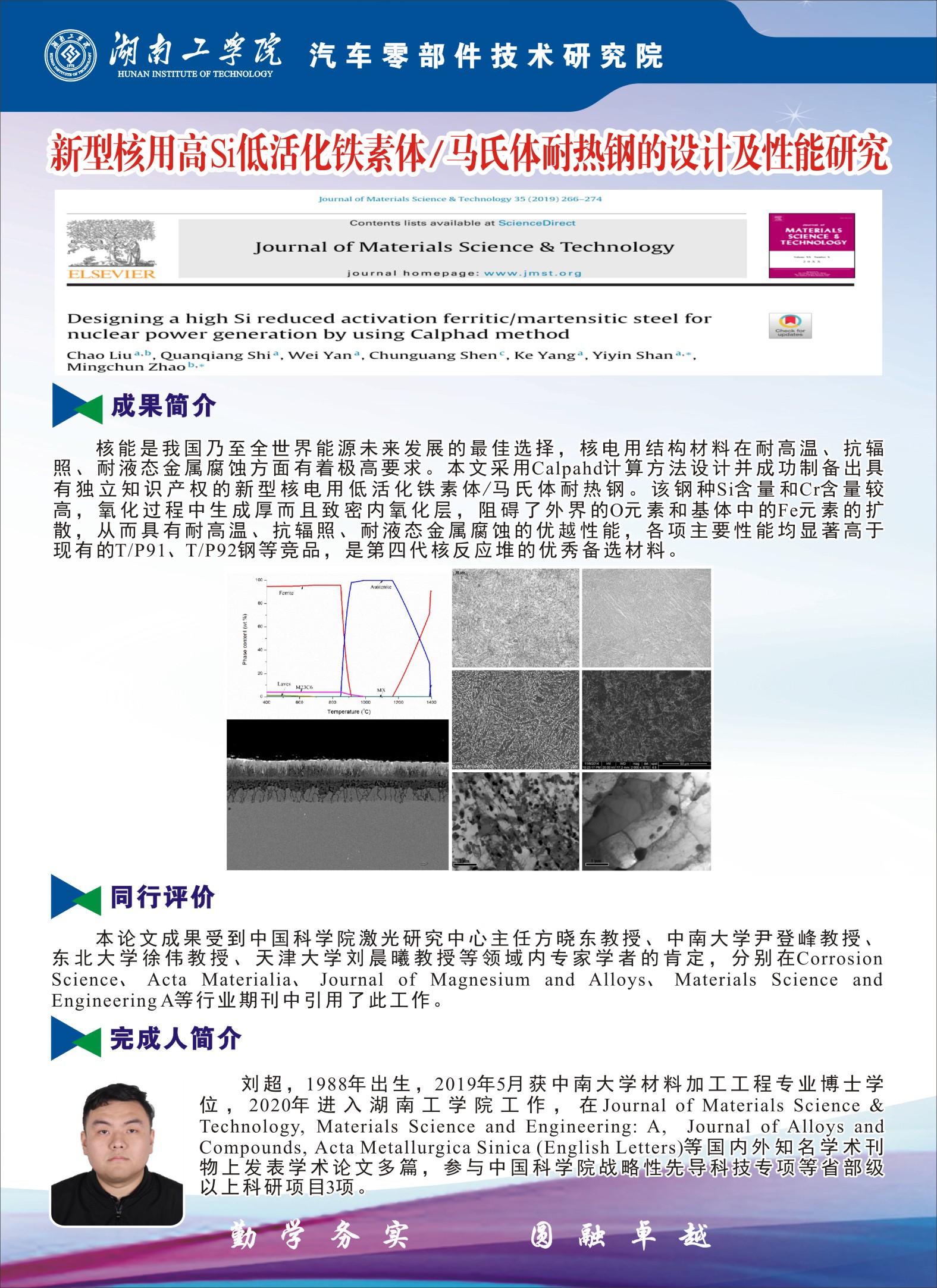 刘超---新型核用高Si低活化铁素体/马氏体耐热钢的设计及性能研究