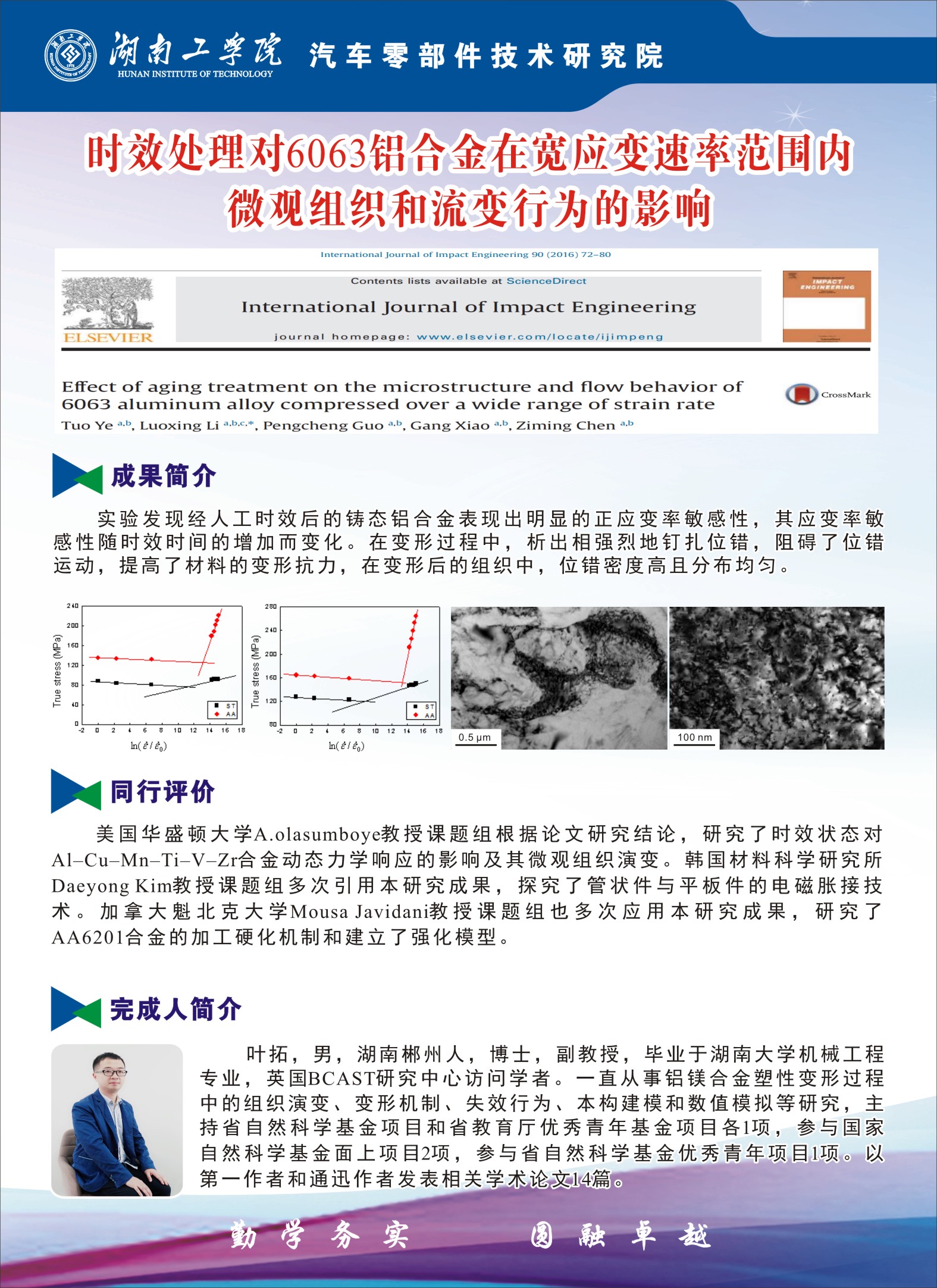 叶拓---时效处理对6063铝合金在宽应变速率范围内微观组织和流变行为的影响