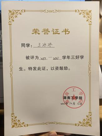 在校期间荣获国家励志奖学金2次、校级一等奖学金1次、校级二等奖学金1次、校三好学生1次、校优秀学生干部1次、校优秀团员干部1次、校优秀共青团员1次。