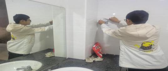 学生党员在建工楼大厅集合后,分组分楼层抵达各自责任区域,大家分工明确,配合默契,带着清洁剂和除胶剂,手拿抹布和清洁工具对厕所内的垃圾和广告进行了仔细的清理。活动中,大家不怕脏、不怕累,克服异味,毫无怨言,认真完成了清理任务。