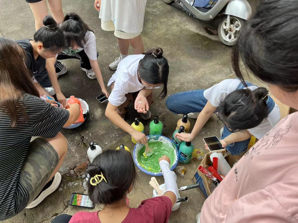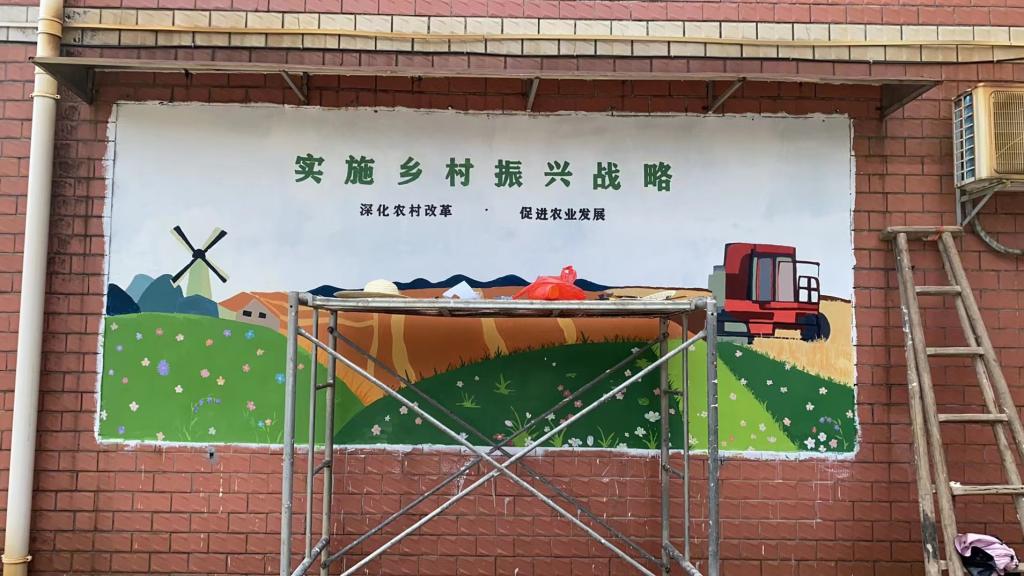 在活动伊始,大家都迫不及待开始将村里为我们提供的绘画工具及颜料进行了整理归纳之后,每个人都按部就班的进入状态,开始各司其职。大家进行了一个简单的分组,从开始粉刷墙面到给墙面打形,再到勾勒墙面形并铺色块,到最后细节的勾勒...每一个步骤,无论简单与否,大家都一丝不苟的去对待。