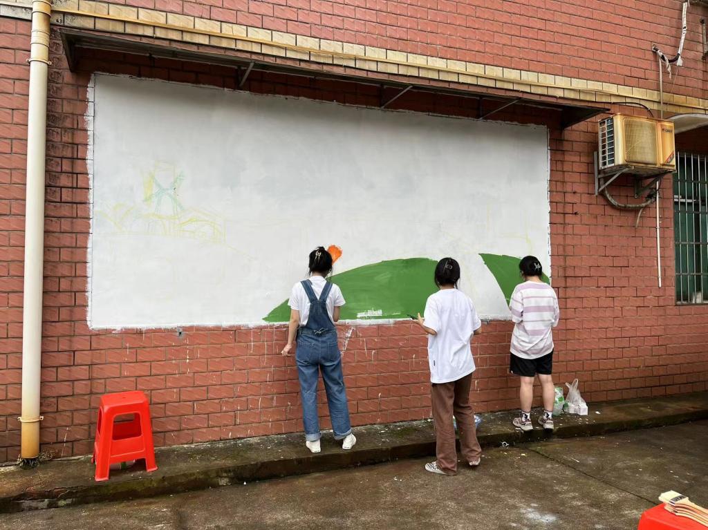 (图为 设计艺术学院实践团成员为墙面勾形)
