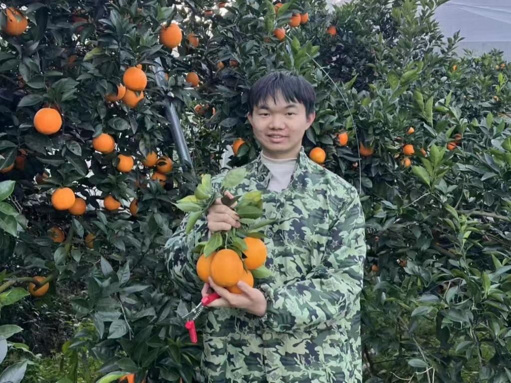 何江林的家乡位于郴州资兴市清江镇,是国家地理标志产品东江湖蜜桔的核心产区。为破解优质农产品“销售难”问题,他利用寒假返乡契机,将工业设计专业知识与家乡产业需求紧密结合。作为国家级大学生创新创业训练计划项目负责人,何江林积极探索“AIGC+电商+助农”模式,从产品包装设计、线上店铺运营到售后流程规范,全方位提升农产品市场形象与销售效率。其运营的店铺单日最高完成订单90余笔,切实为果农解决了销售难题。