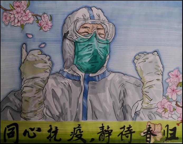 展览前期,学子们积极响应,各显其才,深入挖掘疫情防控中的宝贵精神和生动素材,借助手中的画笔等工具响应抗疫号召,宣传抗疫精神,完成了一幅幅“抗疫”作品。