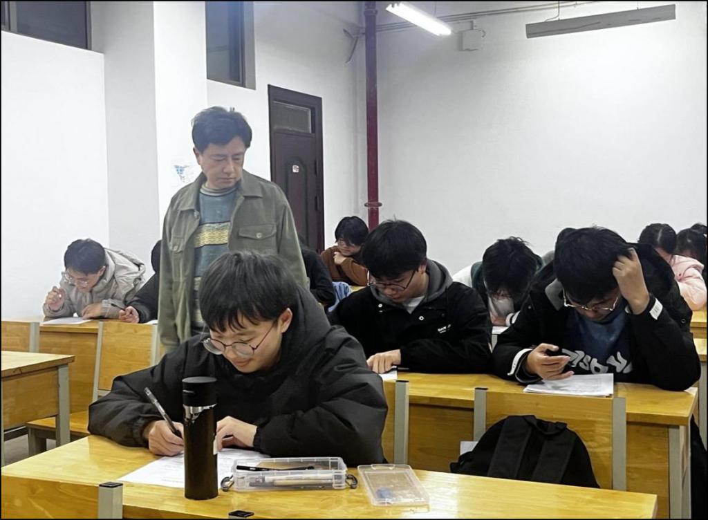 测验期间,同学们态度严谨,重视程度较高,能独立思考,没有交头接耳现象。有的同学胸有成竹,按序答题,下笔犹如春蚕食叶声,体现出对评估知识熟稔熟知;也有部分同学眉头紧蹙,落笔犹豫,显然对一些知识点的掌握略显生疏。张帆指出,测验结束后,要认真评阅测验成绩,仔细分析等级率产生的原因,及时反馈给辅导员、班主任、班委会以利于帮扶促进,再次提高。