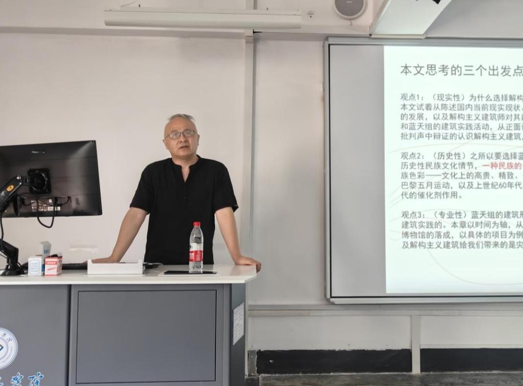 6月15日上午9:30,中南大学建筑与艺术学院李星星教授应邀走进我院,以“跨界与原创——以蓝天组为思考点”为题开展学术讲座。讲座由副院长朱永忠主持,部分教师和百余名学生代表聆听了讲座。