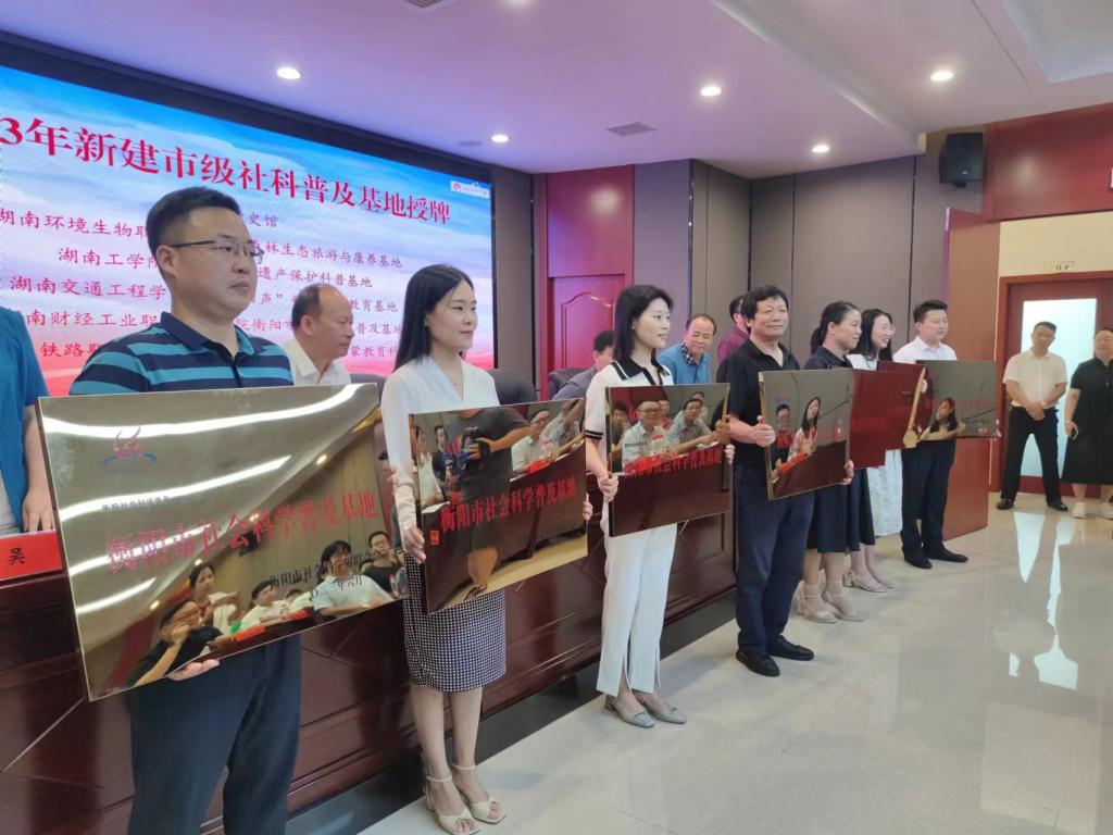 6月29日上午,2023年衡阳市社科普及基地授牌仪式在衡阳县新时代文明实践中心举行,市委常委、市委宣传部部长周玉梅,市委宣传部副部长刘春晖,市社科联主席罗东云等出席仪式,并为包括我院“建筑历史与遗产保护科普基地”等7个获批基地授牌。