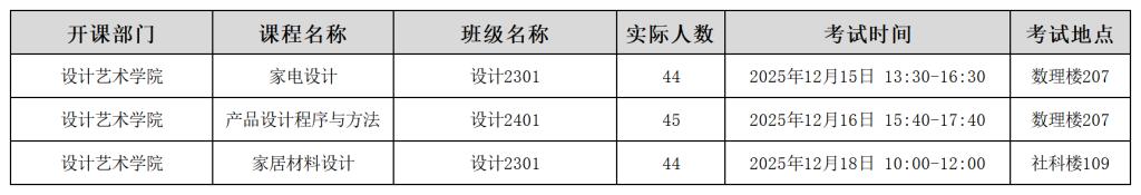 2025-2026-1设计艺术学院提前考试安排