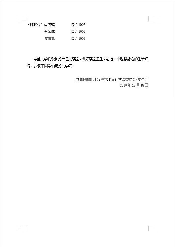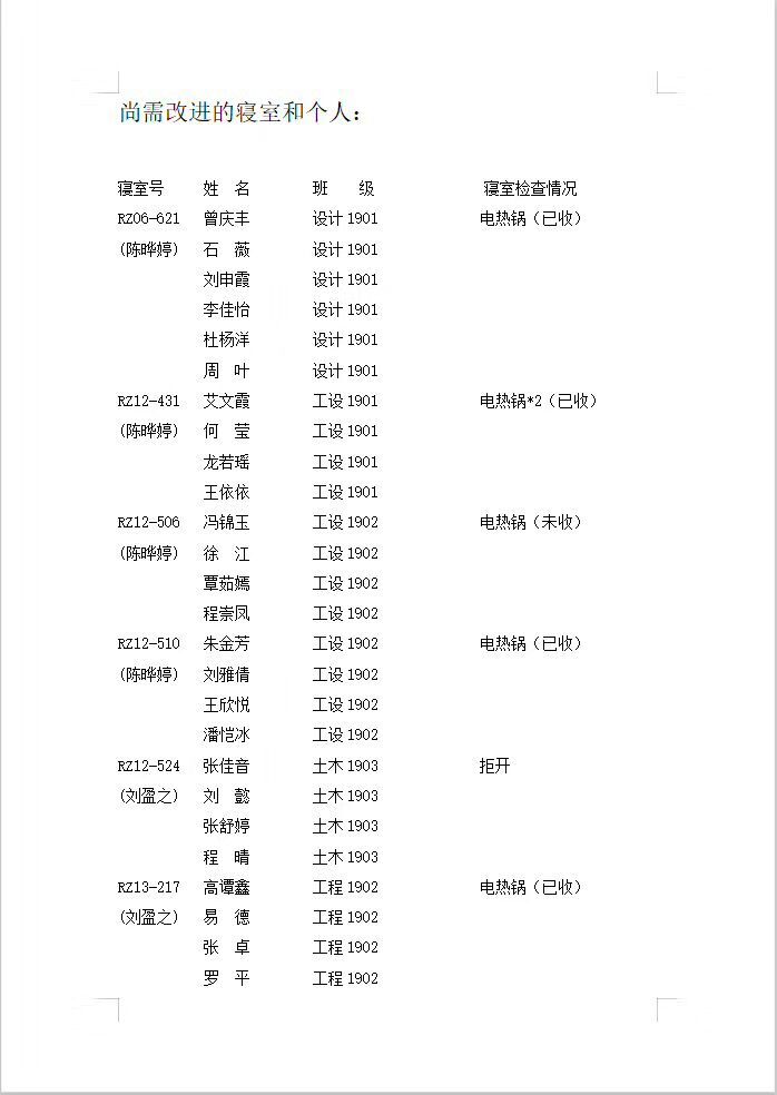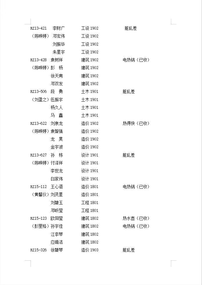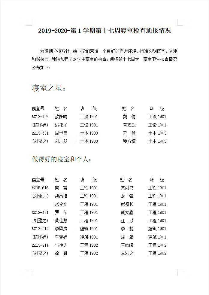 2019-2020-第1学期第十七周寝室检查通报情况